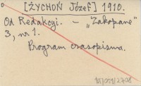 [ŻYCHOŃ Józef] 1910 Od Redakcyi.