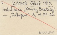 ŻYCHOŃ Józef 1910 Jubileusz "Pomocy Bratniej".