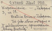 ŻYCHOŃ Józef 1910 Wspomnienie.