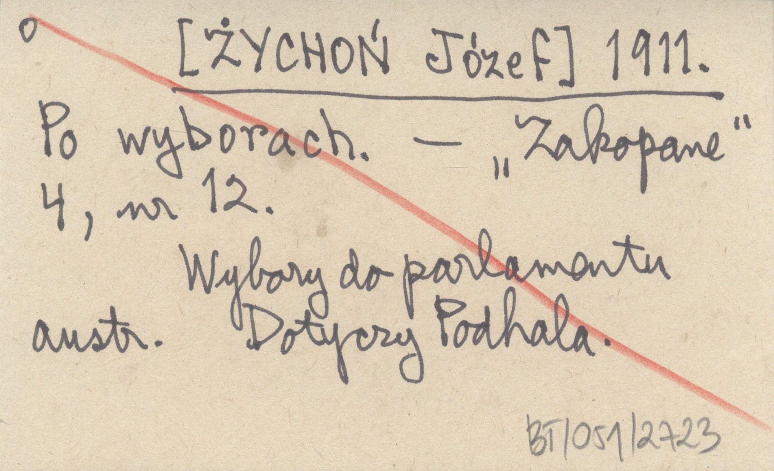 Zakopane, 4, nr 12. Wybory do parlamentu austriackiego. Dotyczy Podhala.