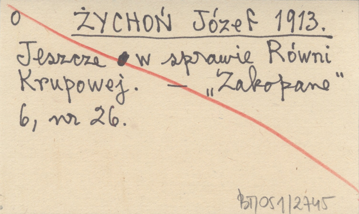 ŻYCHOŃ Józef 1913 Jeszcze w sprawie Równi Krupowej.