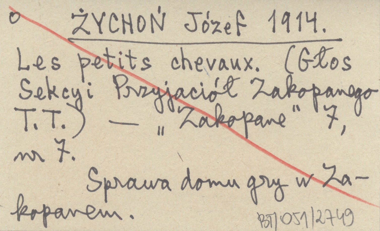 ŻYCHOŃ Józef 1914 Les petits chevaux. (Głos Sekcyi Przyjaciół Zakopanego T.T.).