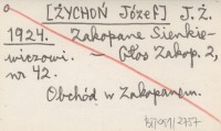 J. Ż. [ŻYCHOŃ Józef] 1924 Zakopane Sienkiewiczowi.