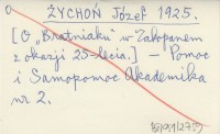ŻYCHOŃ Józef 1925 [O "Bratniaku" w Zakopanem z okazji 25-lecia.]