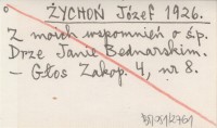 ŻYCHOŃ Józef 1926 Z moich wspomnień o ś.p. Drze Janie Bednarskim.