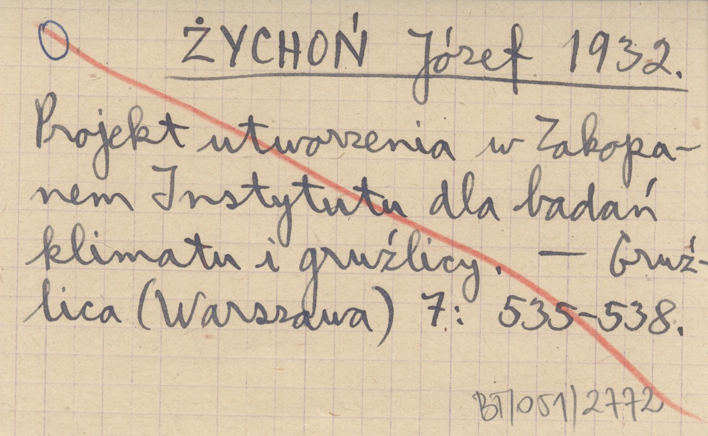 ŻYCHOŃ Józef 1932 Projekt utworzenia w Zakopanem Instytutu dla badań klimatu i gruźlicy.