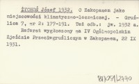 ŻYCHOŃ Józef 1932 a O Zakopanem jako miejscowości klimatyczno-leczniczej.