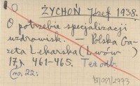 ŻYCHOŃ Józef 1938 O potrzebie specjalizacji uzdrowisk.