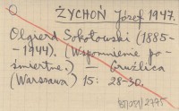 ŻYCHOŃ Józef 1947 Olgierd Sokołowski (1885-1944). (Wspomnienie pośmiertne).