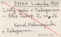 ŻYCKA Ludwika 1925 Listy gości o Zakopanem.