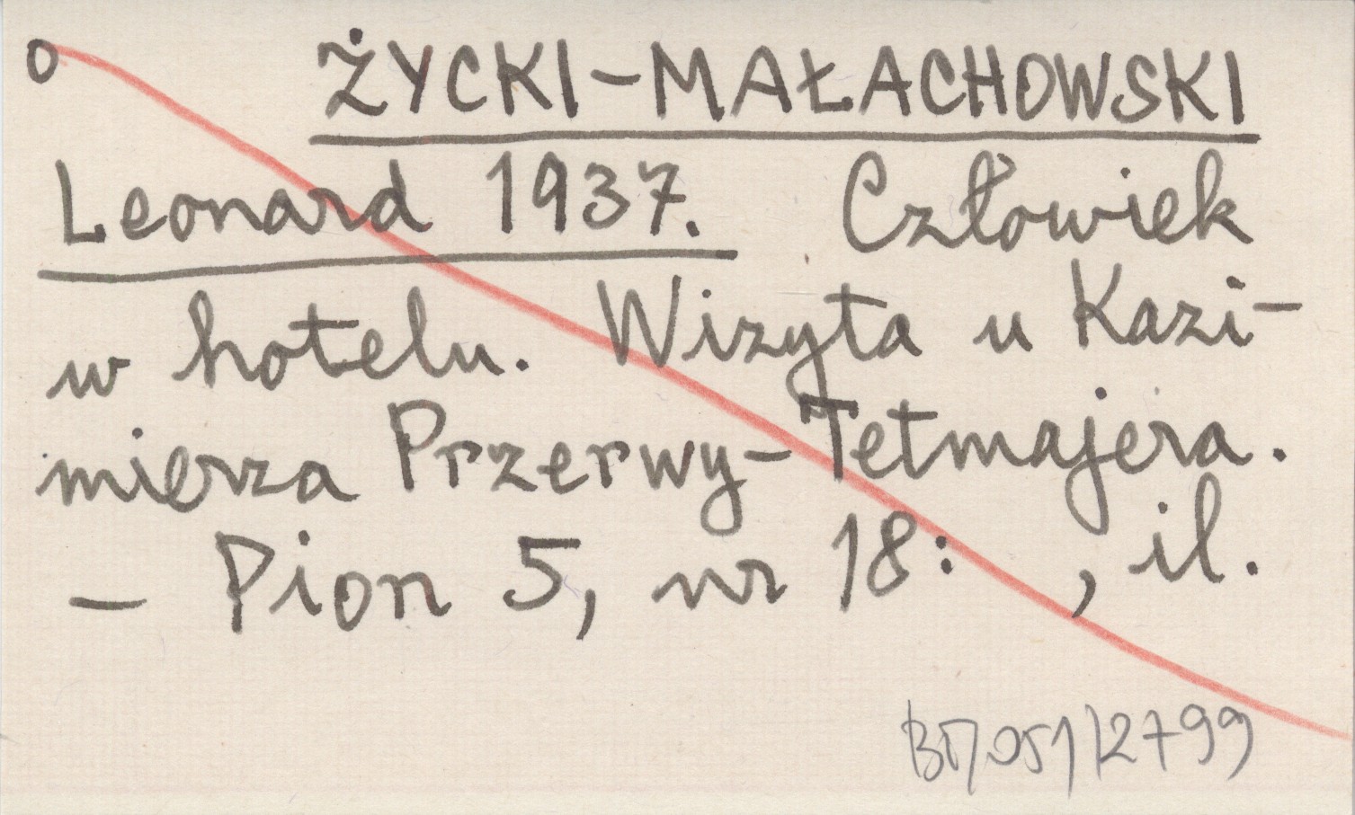 ŻYCKI-MAŁACHOWSKI Leonard 1937 Człowiek w hotelu. Wizyta u Kazimierza Przerwy-Tetmajera.