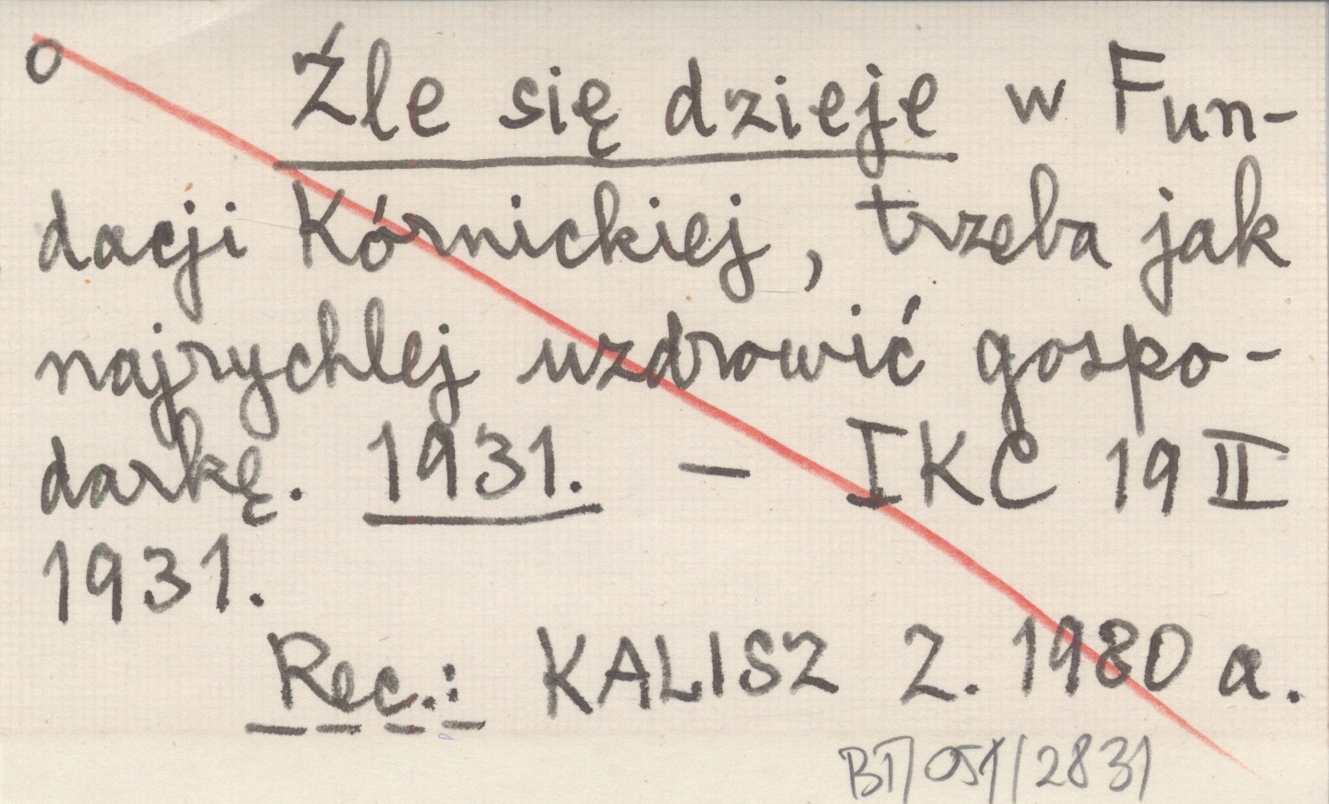 Źle się dzieje w Fundacji Kórnickiej, trzeba jak najrychlej uzdrowić gospodarkę. 1931