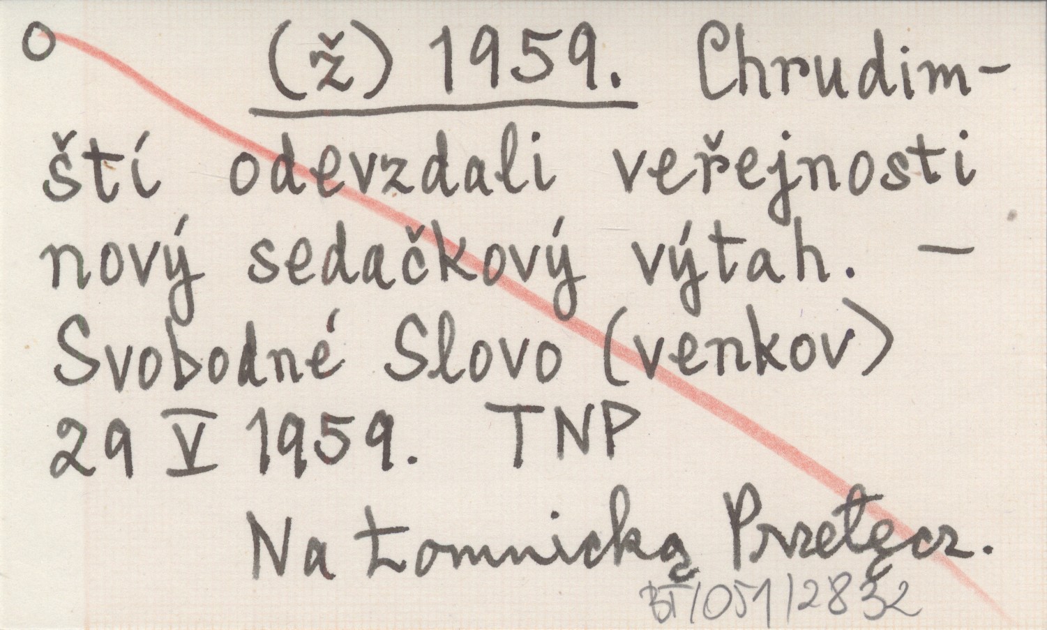 (ž) 1959 Chrudimští odevzdali veřejnosti nový sedačkový výtah.