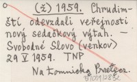 (ľ) 1959 Chrudimątí odevzdali veřejnosti nový sedačkový výtah.