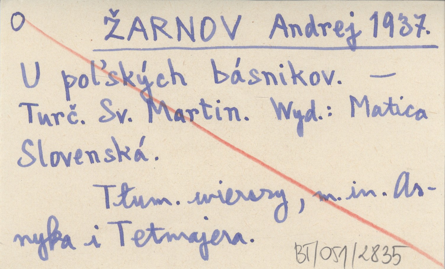 Matica Slovenská, Turèiansky Svätę Martin , Tłumaczenie wierszy, m. in. Asnyka i Tetmajera.
