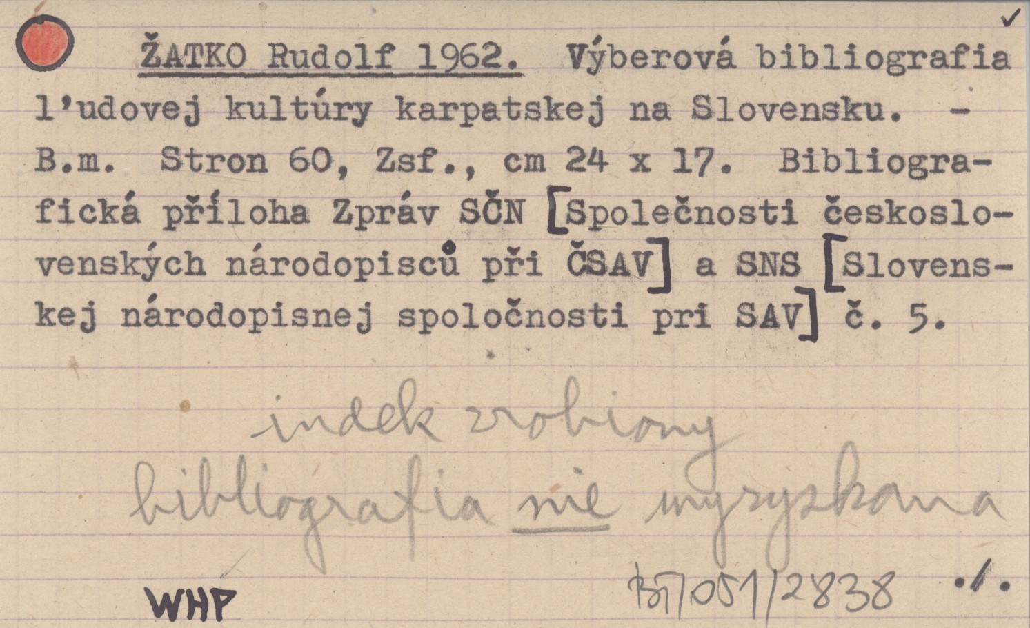 ®ATKO Rudolf 1962 Výberová bibliografia µudovej kultúry karpatskej na Slovensku.