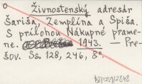 Živnostenský adresár Šariša, Zemplína a Spiša. S prílohou Nákupné pramene. 1943