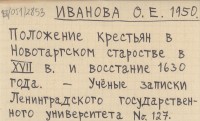 IVANOVA O. E. 1950 Položenie krest'jan v novotargskom starostve v XVII v. i vosstanie 1630 goda.