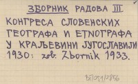 Zbornik Radova III Kongresa Slovenskich Geografa i Etnografa u kral'evnin Jugoslaviji. 1930