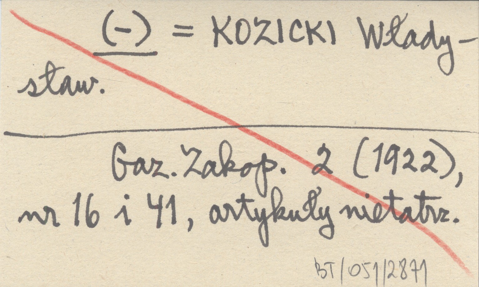 (-) KOZICKI Władysław Gazeta Zakopiańska 2 (1922), nr 16, 41. Artykuł nietatrzański.