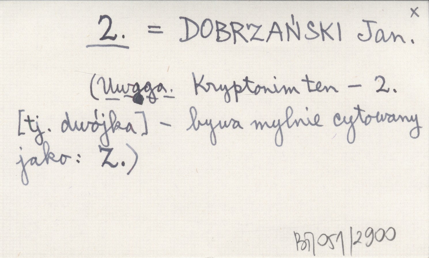 2. DOBRZAŃSKI Jan Kryptonim ten - 2. [tj. dwójka] - bywa mylnie cytowany jako: Z.