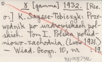 1932 [Rec. o:] K. Saysse-Tobiczyk: Przewodnik po uzdrowiskach polskich. Tom I. Polska południowo-zachodnia. (Lwów 1931)