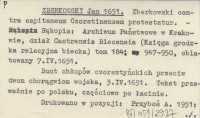 ZBERKOWSKI Jan 1651 Zberkowski contra capitaneum Czorstinensem protestatur.