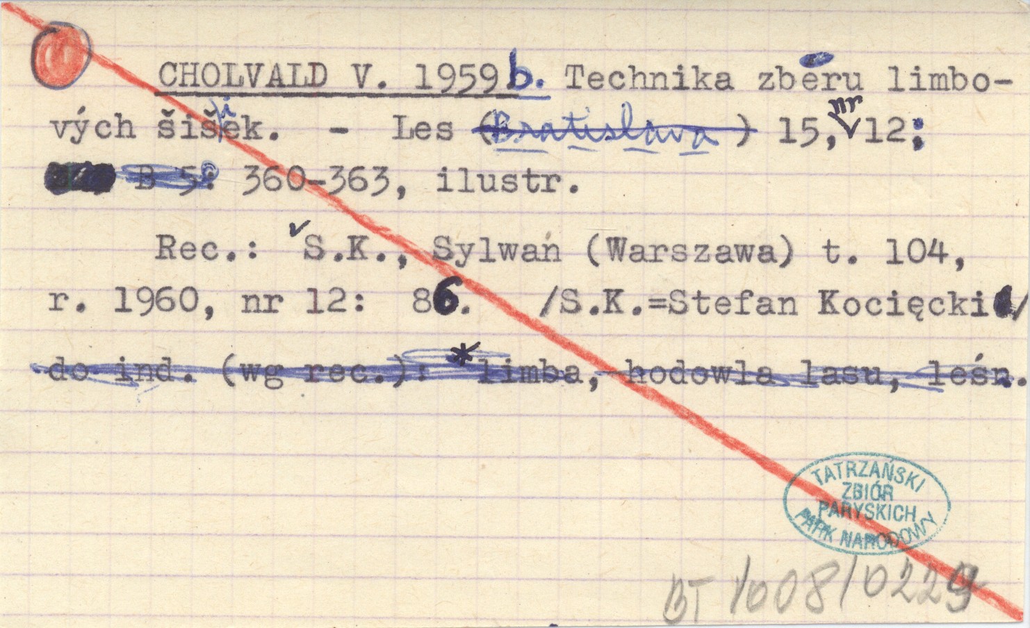 Les, 15, nr 12: 360-363, il. REC: [KOCIĘCKI Stefan] S. K., Sylwan (Warszawa) t. 104, r. 1960, nr 12: 86.