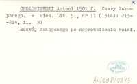 CHOŁONIEWSKI Antoni 1901 b Ruch umysłowy w Zakopanem.