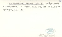 CHOŁONIEWSKI Antoni 1901 g Zbójnictwo w Zakopanem.