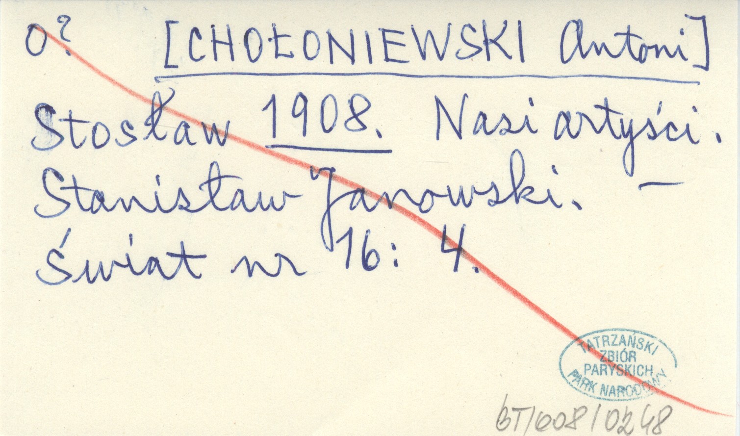 Stosław [CHOŁONIEWSKI Antoni] 1908 Nasi artyści. Stanisław Janowski.