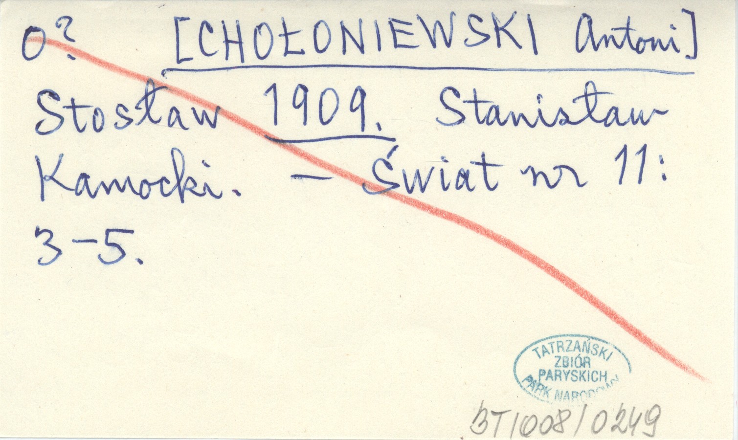 Stosław [CHOŁONIEWSKI Antoni] 1909 Stanisław Kamocki.