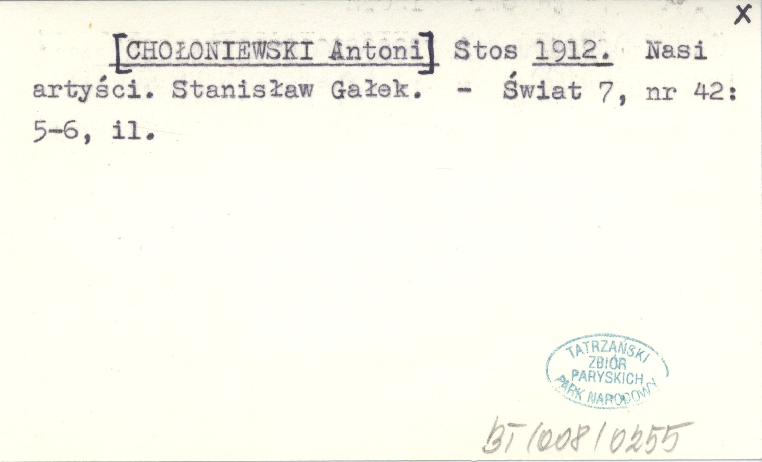 Stos [CHOŁONIEWSKI Antoni] 1912 Nasi artyści. Stanisław Gałek.