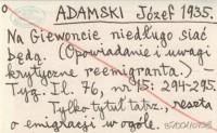 ADAMSKI Józef 1935 Na Giewoncie niedługo siać będą. (Opowiadanie i uwagi krytyczne reemigranta.)
