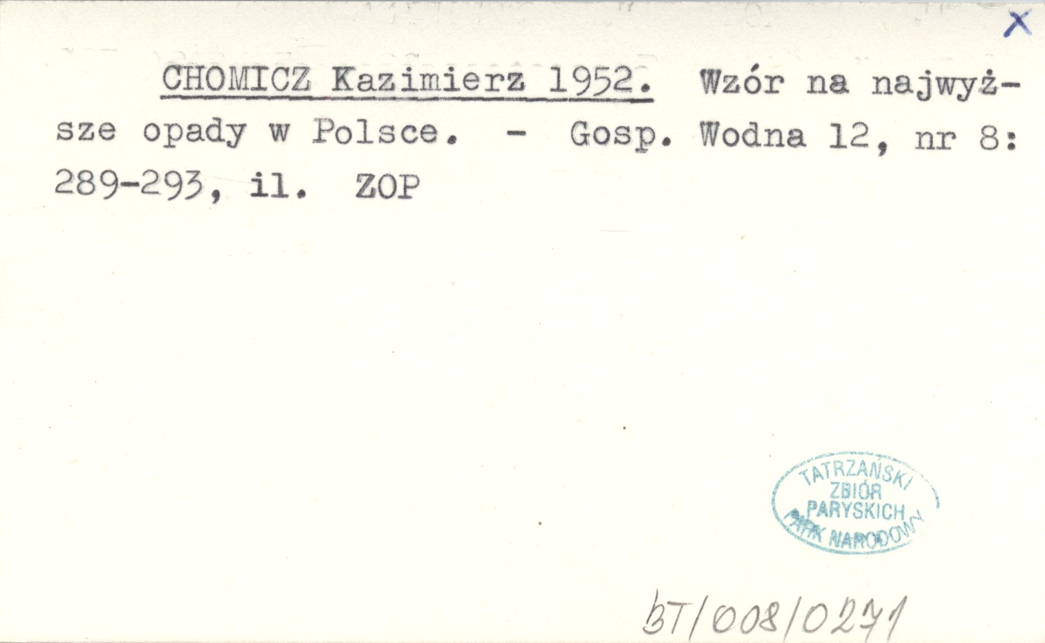 CHOMICZ Kazimierz 1952 Wzór na najwyższe opady w Polsce.