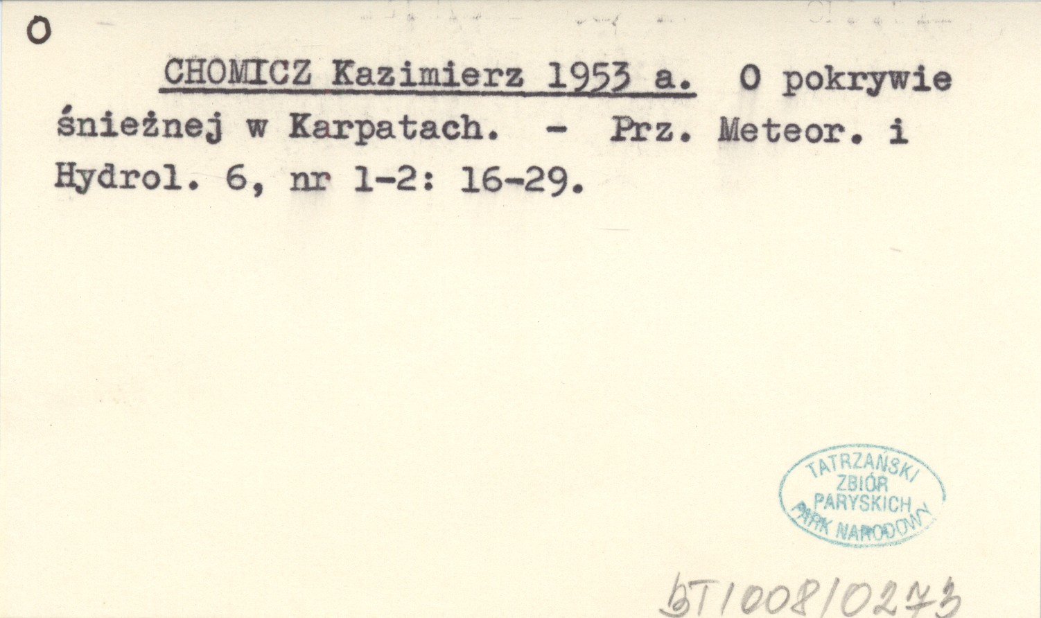 CHOMICZ Kazimierz 1953 a O pokrywie śnieżnej w Karpatach.