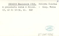 CHOMICZ Kazimierz 1953 Pokrywa śnieżna a gospodarka wodna w Polsce.
