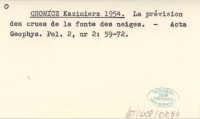 CHOMICZ Kazimierz 1954 La prévision des crues de la fonte des neiges.