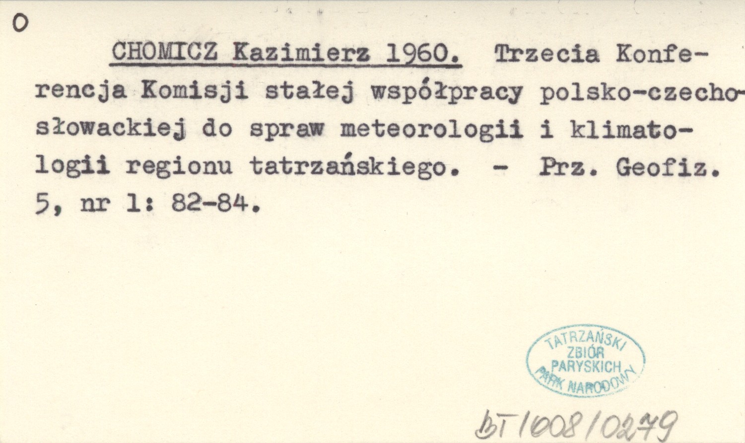 CHOMICZ Kazimierz 1960 Trzecia Konferencja Komisji współpracy polsko-czechosłowackiej do spraw meteorologii i klimatologii regionu tatrzańskiego.