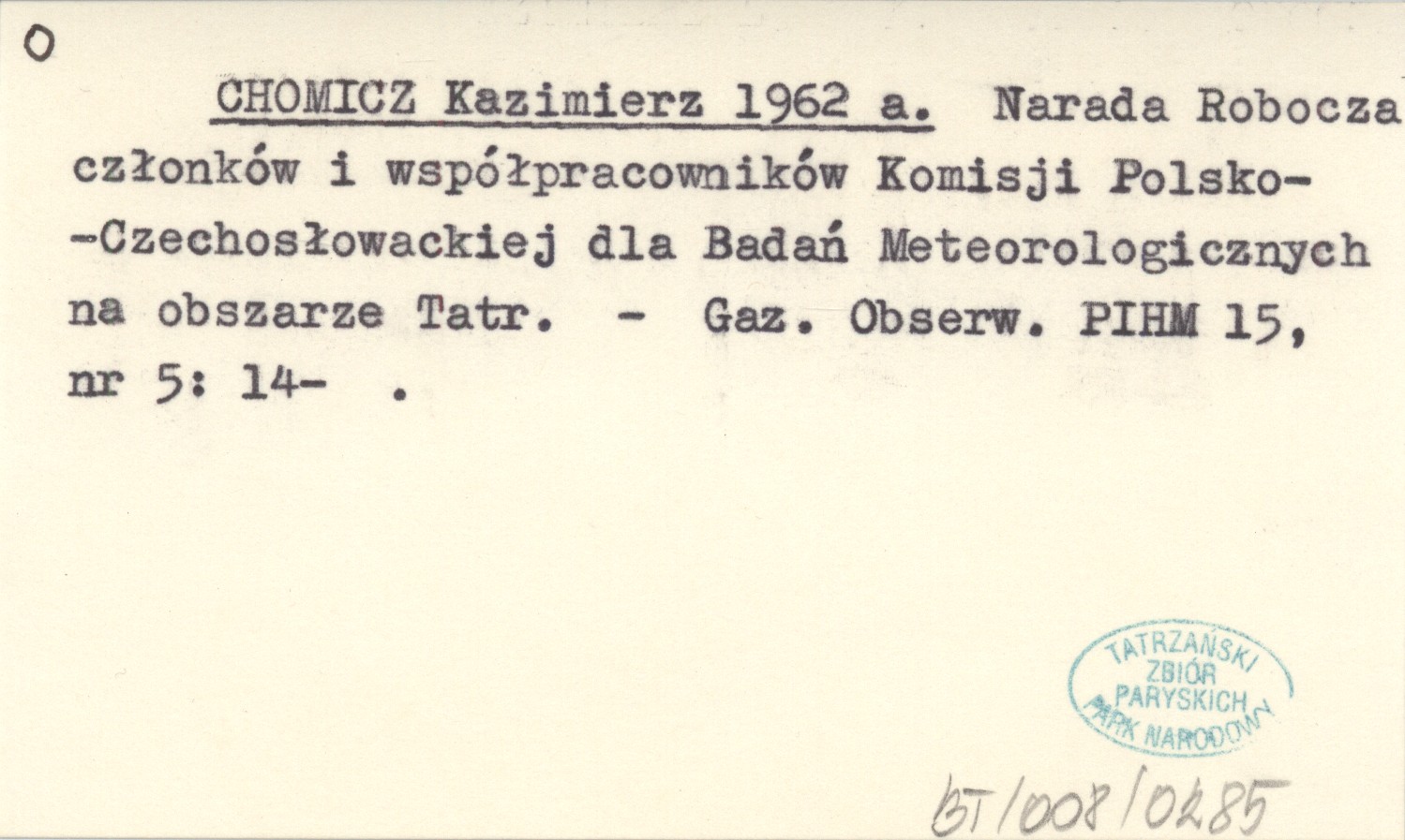 CHOMICZ Kazimierz 1962 a Narada Robocza członków i współpracowników Komisji Polsko-Czechosłowackiej dla Badań Meteorologicznych na obszarze Tatr.