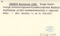 CHOMICZ Kazimierz 1959 Druga Konferencja meteorologiczno-klimatologiczna Komisji współpracy polsko-czechosłowackiej w regionie Tatr.