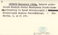 CHOMICZ Kazimierz 1960 Trzecia Konferencja Komisji współpracy polsko-czechosłowackiej do spraw meteorologii i klimatologii regionu tatrzańskiego.