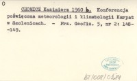 CHOMICZ Kazimierz 1960 b Konferencja poświęcona meteorologii i klimatologii Karpat w Smolenicach.