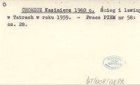 CHOMICZ Kazimierz 1960 c Śnieg i lawiny w Tatrach w roku 1959.