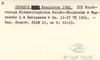 CHOMICZ Kazimierz 1961 III Konferencja Klimatologiczna Polsko-Niemiecka w Warszawie i w Zakopanem w dn. 11-17 VI 1961.