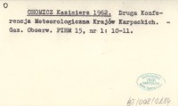 CHOMICZ Kazimierz 1962 Druga Konferencja Meteorologiczna Krajów Karpackich.