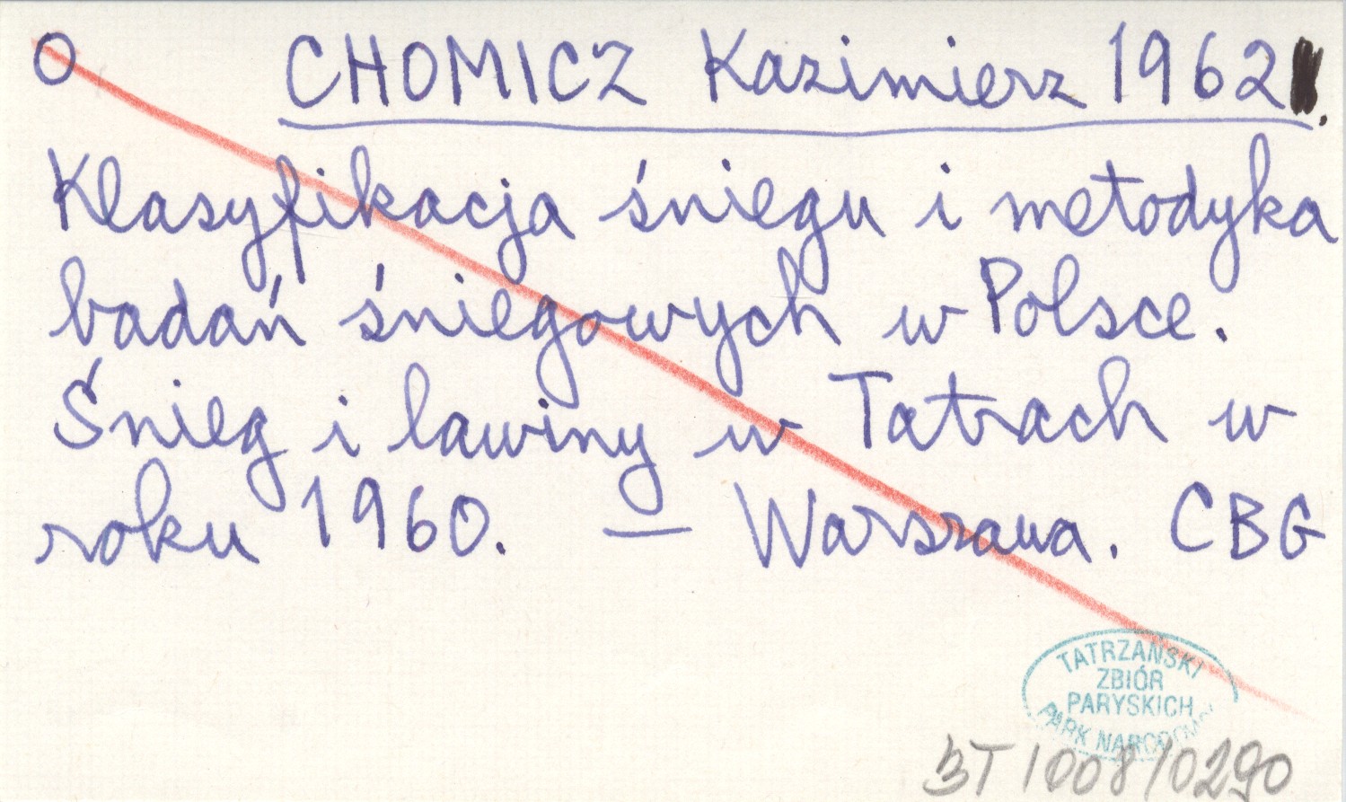 CHOMICZ Kazimierz 1962 Klasyfikacja śniegu i metodyka badań śniegowych w Polsce. Śnieg i lawiny w Tatrach w roku 1960.