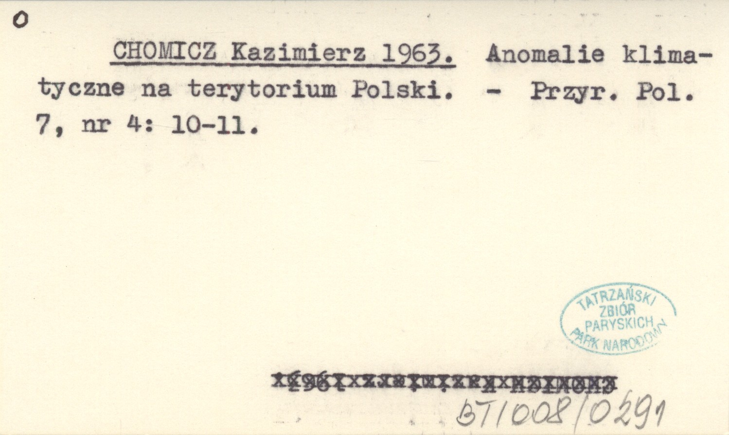CHOMICZ Kazimierz 1963 Anomalie klimatyczne na terytorium Polski.