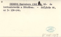CHOMICZ Kazimierz 1962 e Hó-és lavinakutatás a Tátrában.