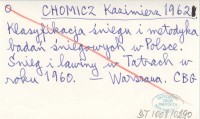 CHOMICZ Kazimierz 1962 c Klasyfikacja śniegu i metodyka badań śniegowych w Polsce.